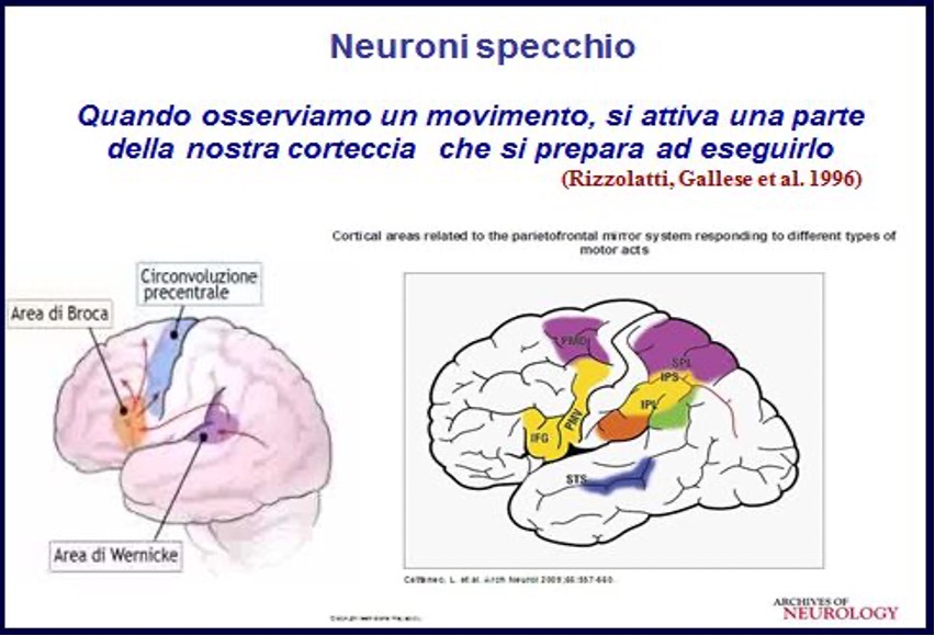 [1] La principale funzione dei neuroni specchio è la comprensione di quello che gli altri stanno facendo, non la semplice imitazione. I neuroni specchio inoltre rivestono una funzione fondamentale non solo per quanto riguarda la percezione del movimento ma anche per l’osservazione delle emozioni negli altri.